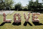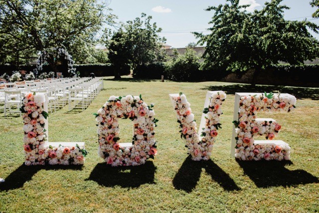 Vous pouvez également installer des éléments marquants à l'entrée de votre cérémonie comme un panneau de bienvenue ou le LOVE fleuri.