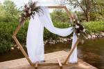 L'arche est un élément important puisqu'elle se tient en arrière plan comme décor de votre union. Nous vous proposons notre arche carrée en bois brut mais aussi une arche hexagonale ou une arche cuivrée, très tendance pour un mariage boho ou à tendance industrielle.