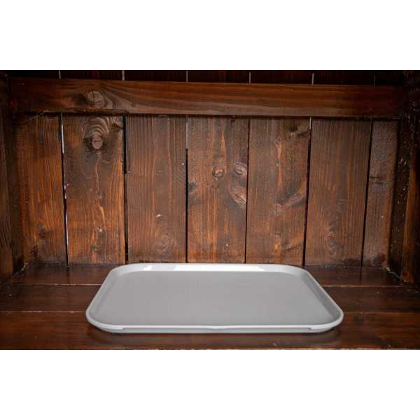 Le plateau de service PVC gris est un produit classique. Simple et très pratique, il est très utilisé par les traiteurs et restaurateurs, et il peut faciliter à la fois le service et le dressage d'un buffet.