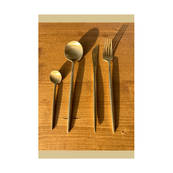La Cuillère de table de la gamme Délicatesse est un produit a la forme élancée et à la finition dorée en acier inoxydable.