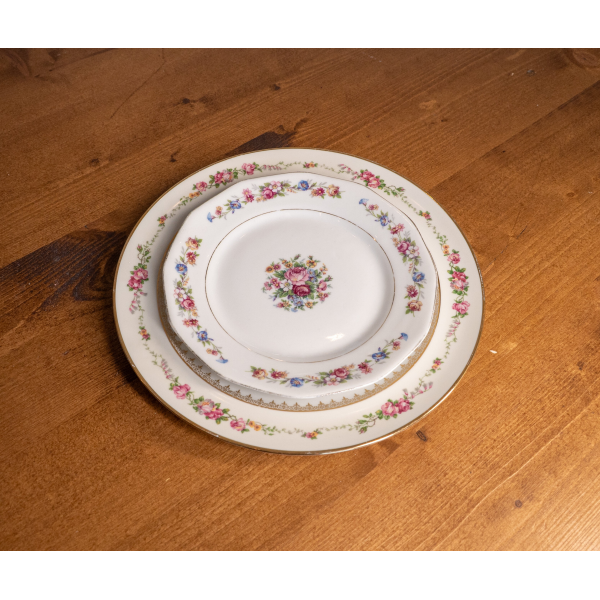 Assiette à dessert Vintage fleurie dorée (lot dépareillé)