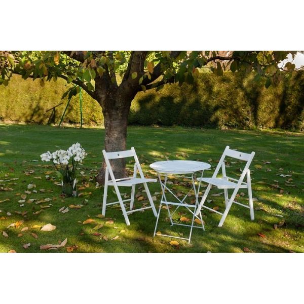 Il peut être accompagné de nos chaises pliantes lattées blanches ou même de nos chaises pliantes square blanche.