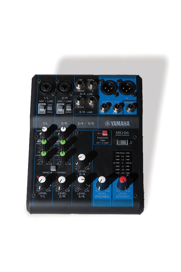 Enceinte Yamaha 500 watts (pied d'enceinte, table de mixage et prise jack)