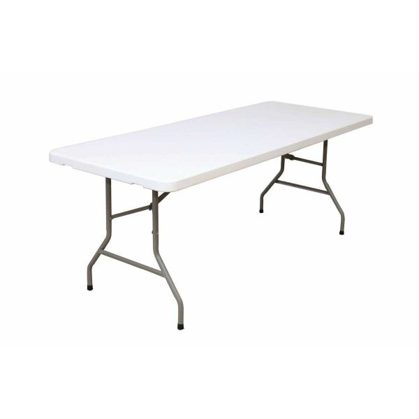 La table rectangulaire en PVC est pratique pour diverses fonctions.